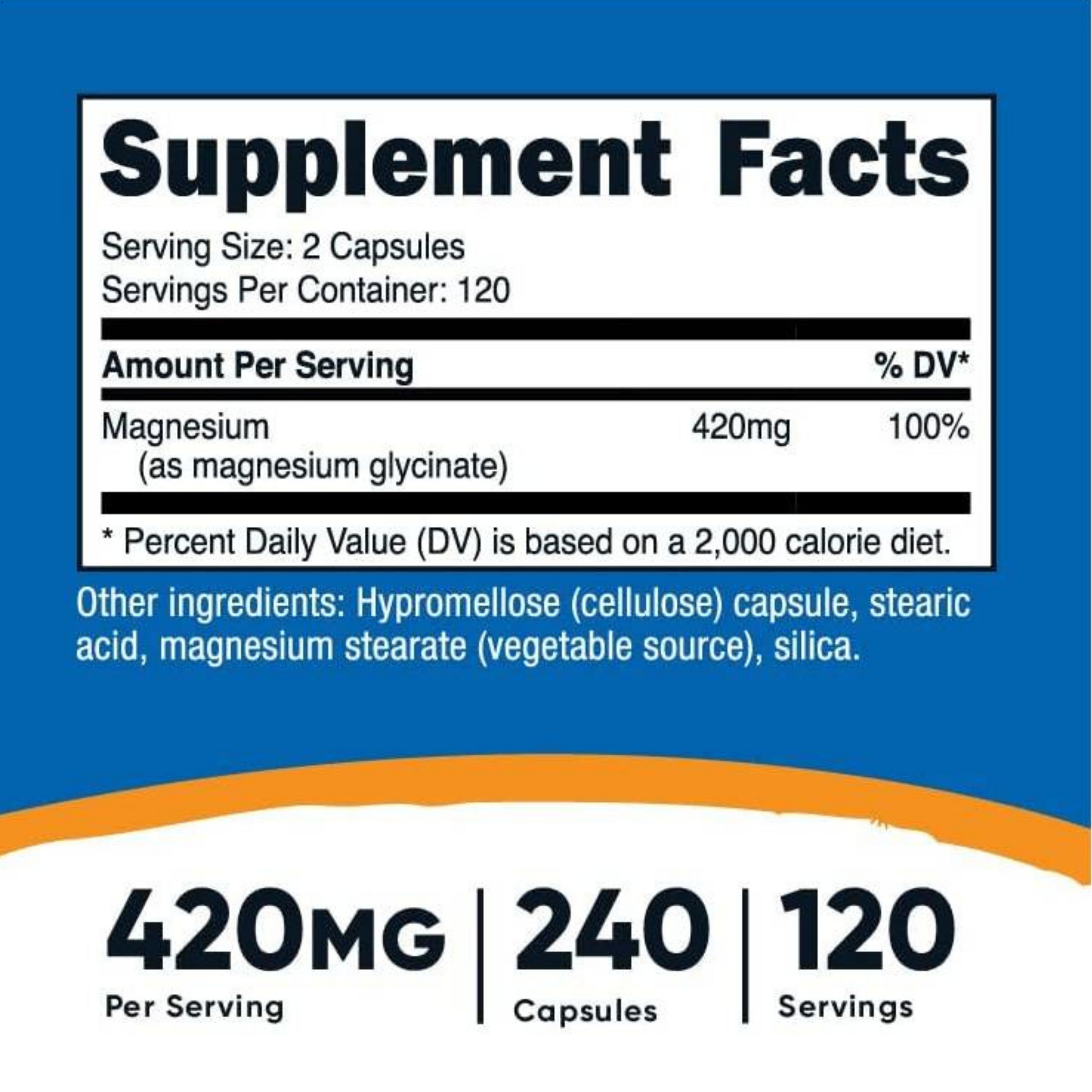 Cantidad por cápsula: 420 mg de glicinato de magnesio.