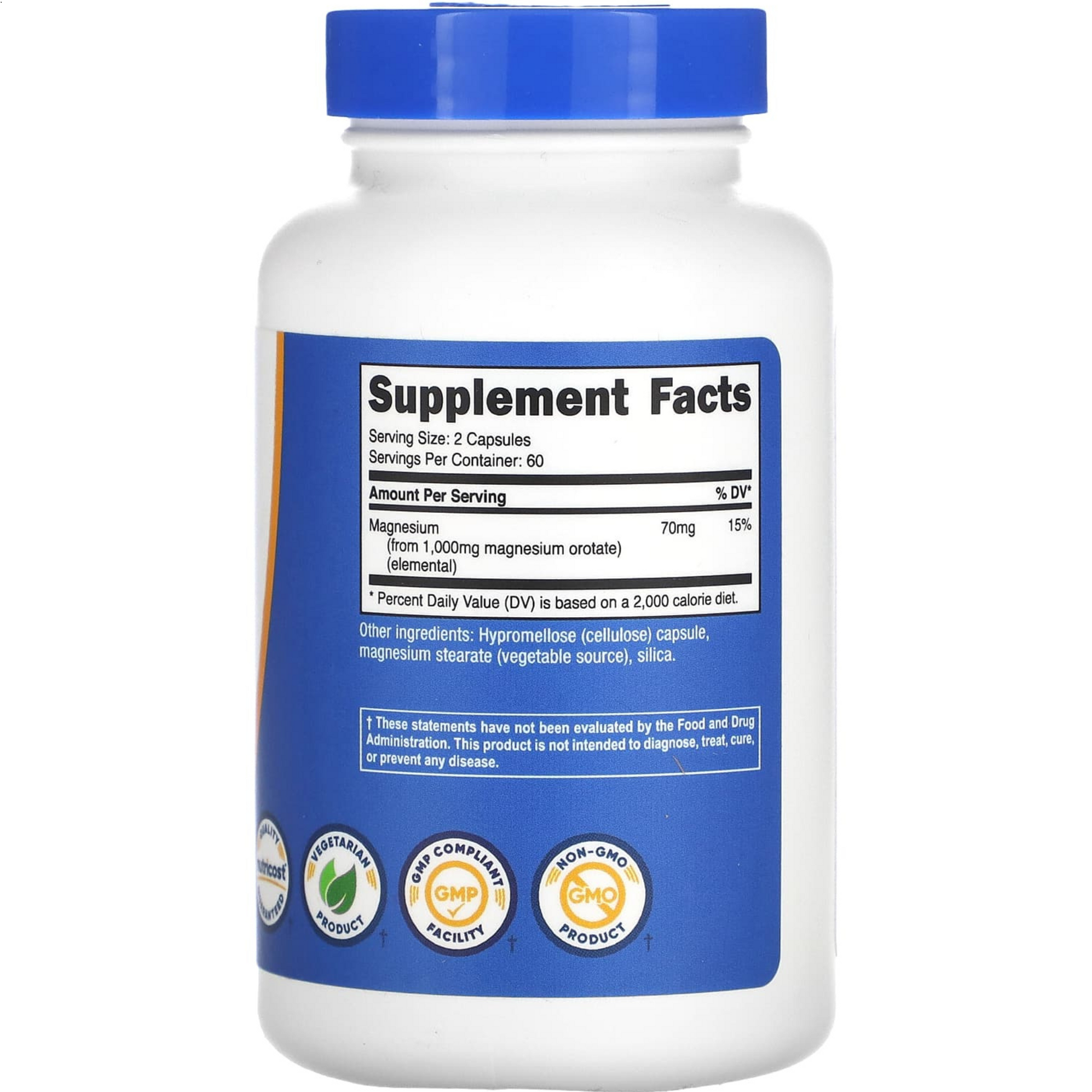 El Magnesio Orotato 1000 mg de Nutricost (120 cápsulas) es una forma altamente absorbible, muy valorada por sus beneficios en la salud del corazón, la energÃa celular, los músculos y el rendimiento fÃsico , además de aportar bienestar nervioso y óseo. La dosis recomendada es de 1 a 2 cápsulas al dÃa con alimentos , lo que aporta 120–160 mg de magnesio elemental.