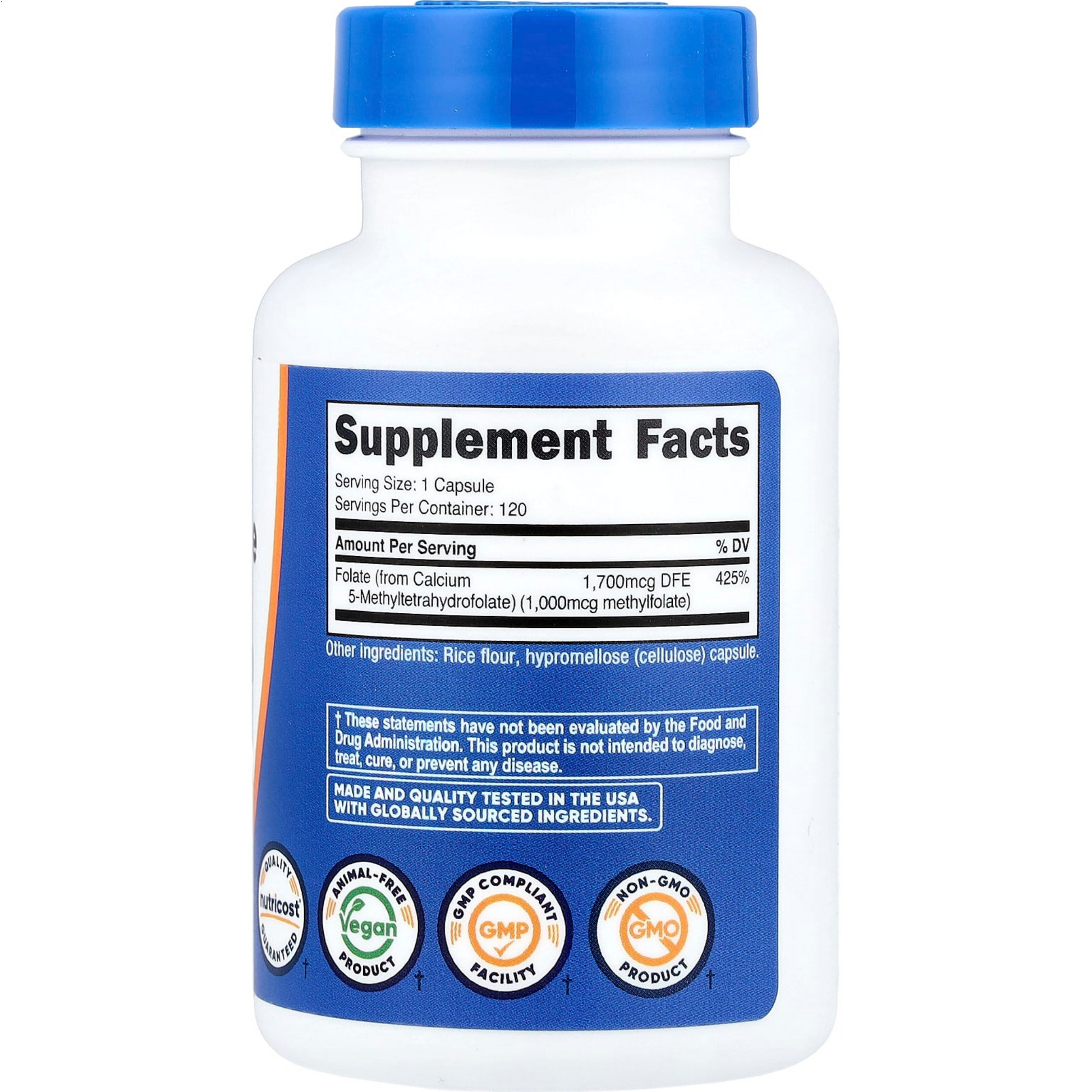 Cantidad por cápsula: 1000 mcg (1 mg) de metil folato (L-5-MTHF).