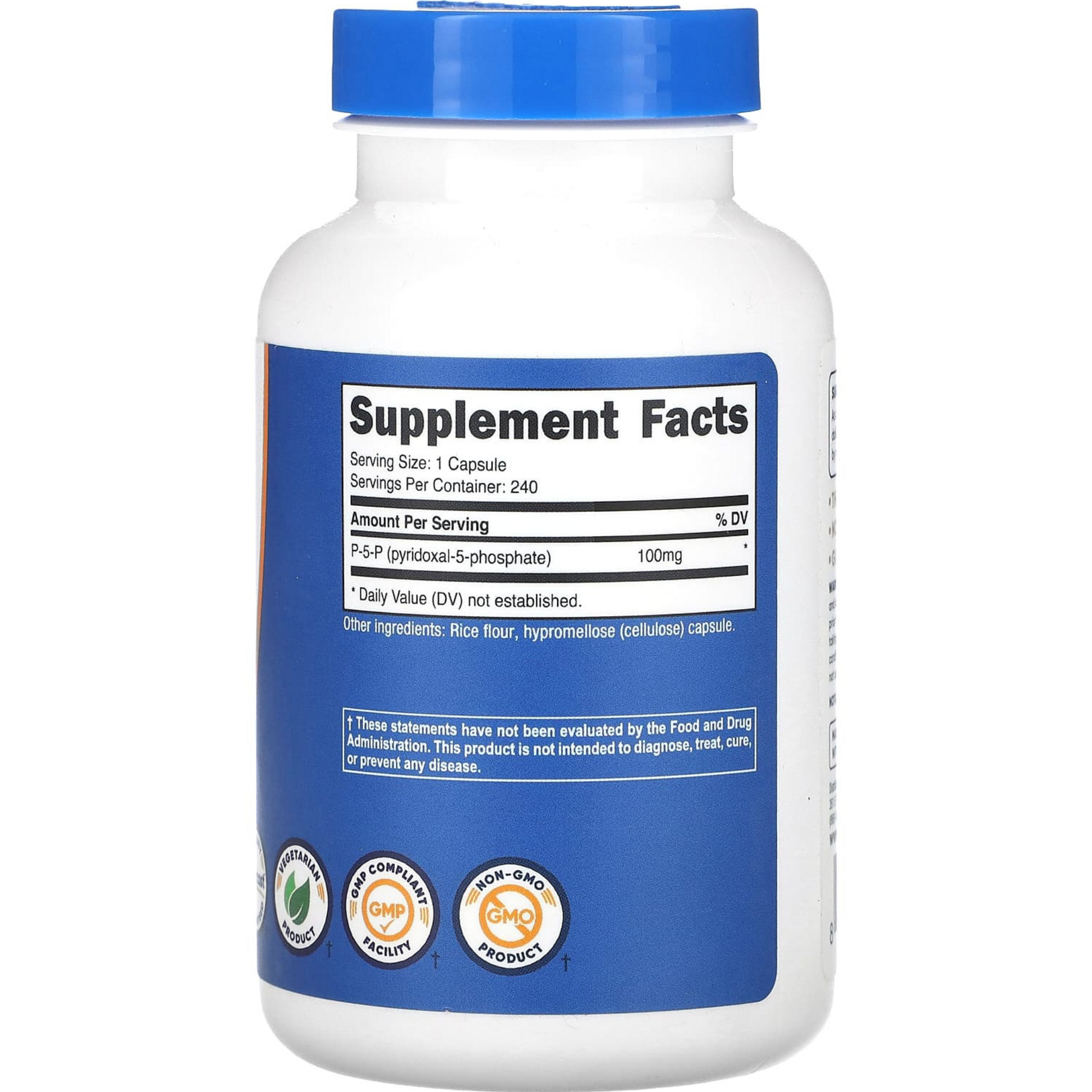 Nutricost P5P: Cada cápsula aporta 100 mg de P5P, equivalente a una dosis alta y terapéutica.