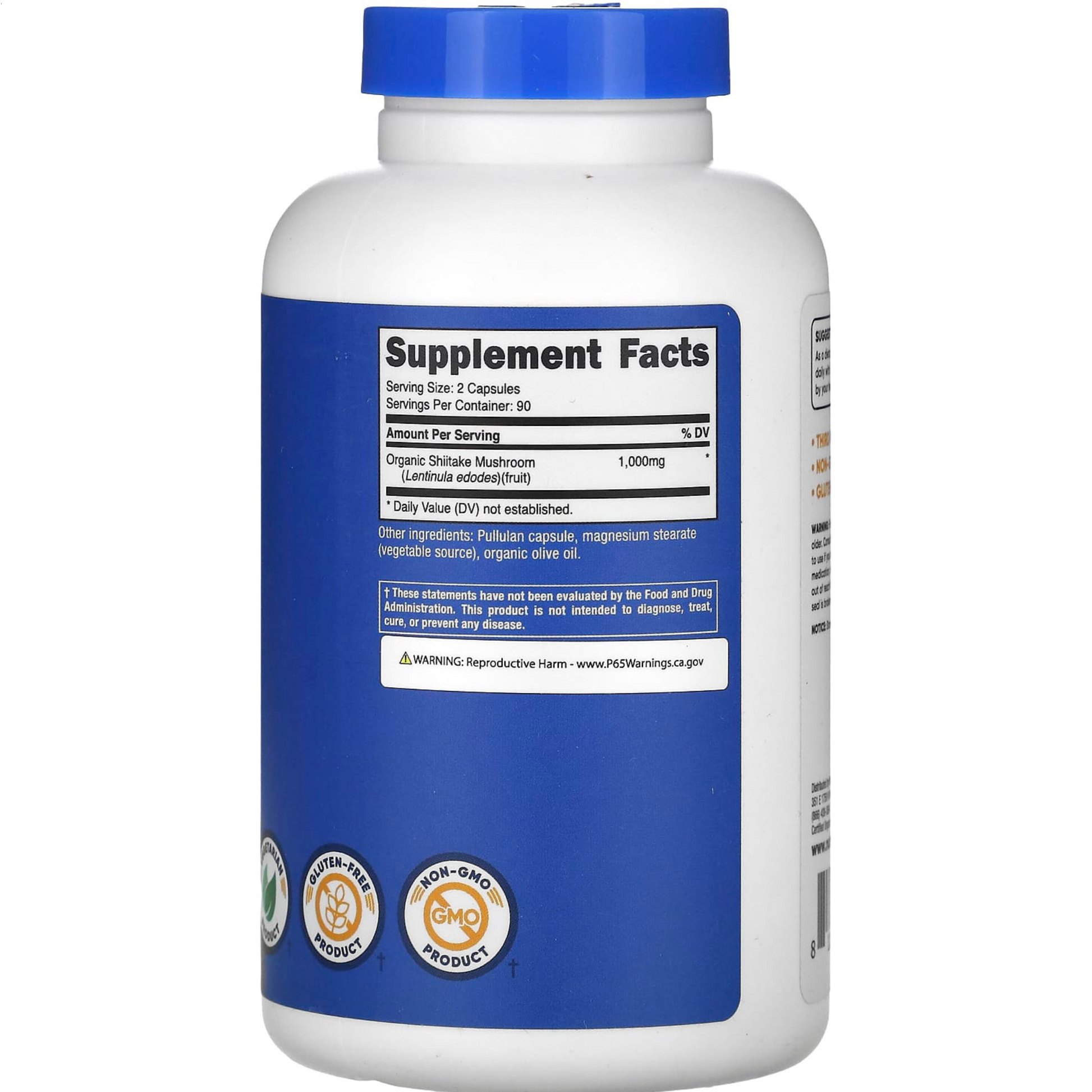 Cada cápsula de Nutricost contiene 1000 mg de extracto de shiitake.