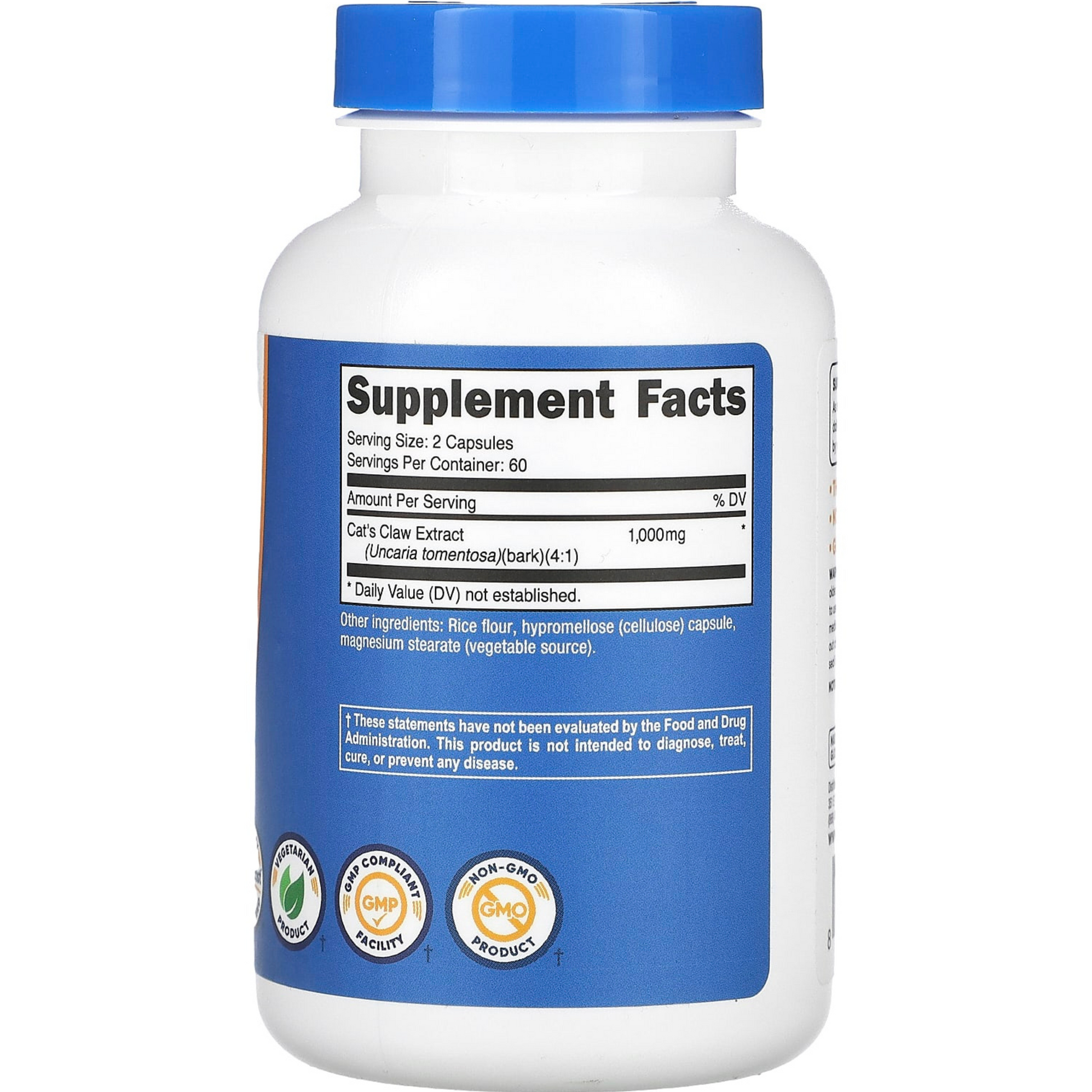 Cada cápsula contiene: 1000 mg de extracto de uña de gato .
