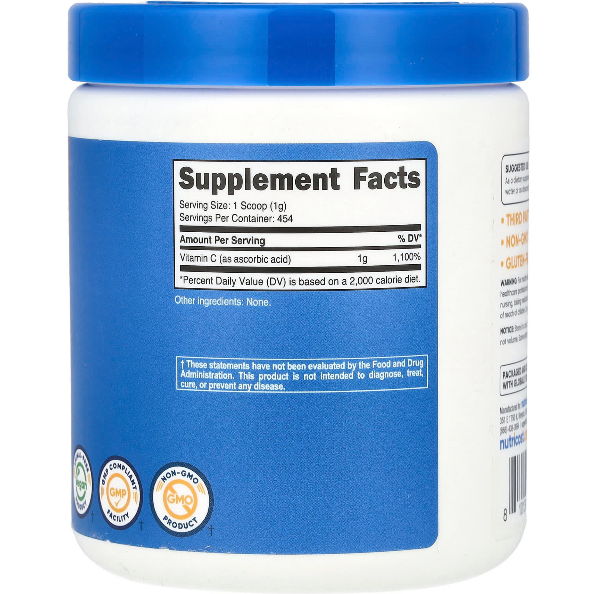 💊 Vitamina C Ácido Ascórbico en Polvo – Nutricost (1 g por servicio / 1 libra)