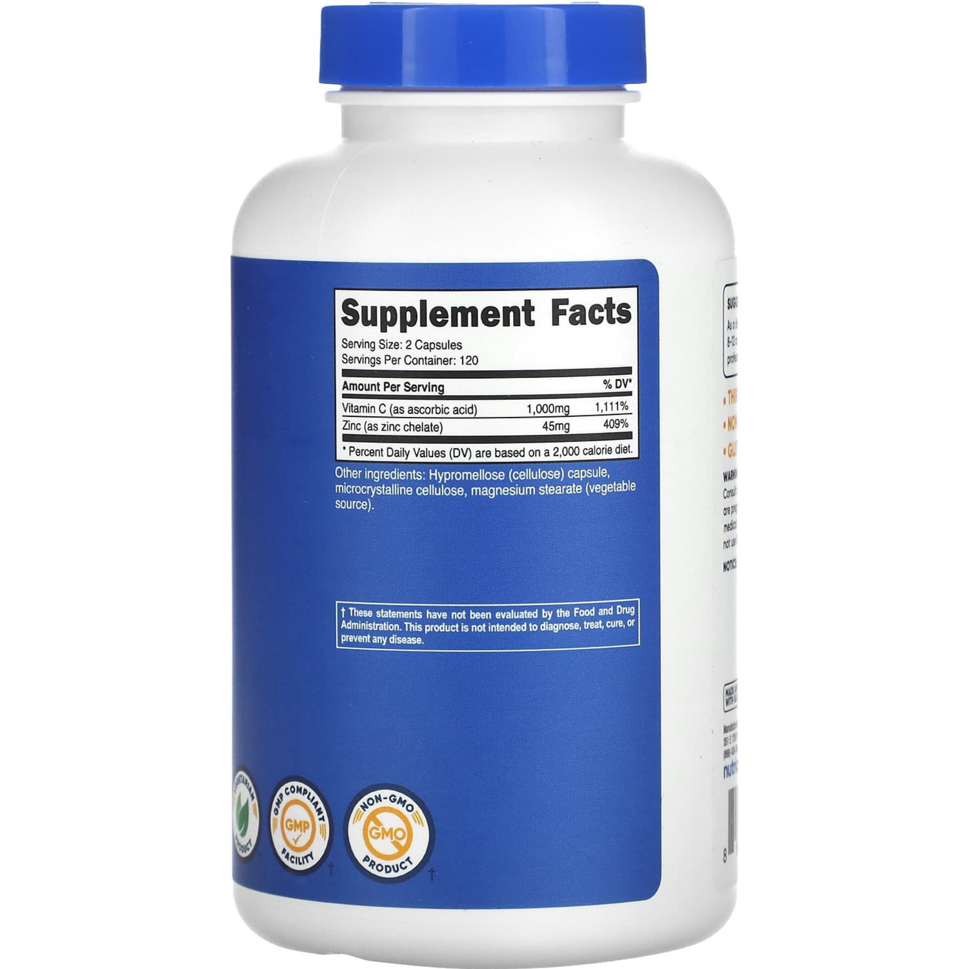 💊 Vitamina C + Zinc (Nutricost) – 120 cápsulas
