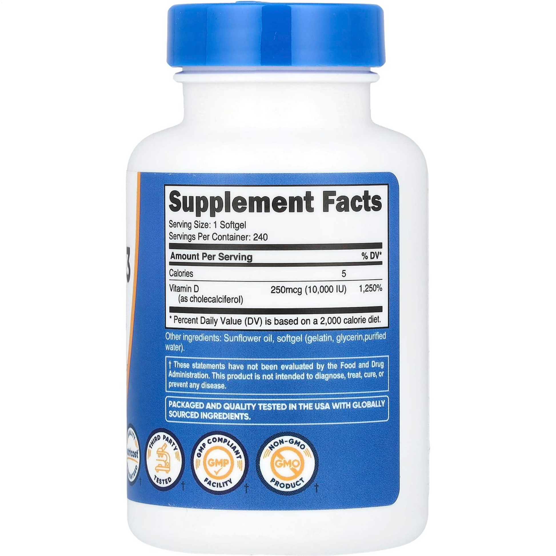 🧾 ¿Qué es la Vitamina D3 10,000 IU Nutricost?
