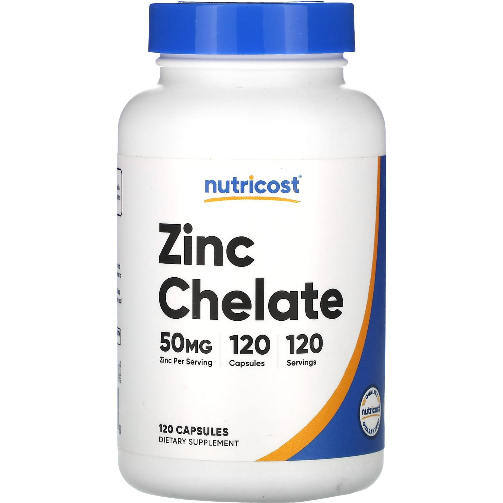 Cada cápsula de Zinc Chelate Nutricost aporta 50 mg de zinc elemental.